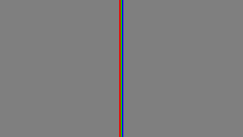 Anyone reading this article should see a line of a saturated red hue. Now, if I also add a green line and a blue line of beside it and shrink the width as much as possible, we get the following image: