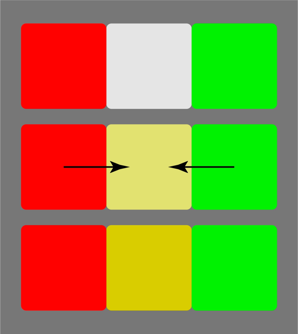 Figure 6: Spatial adaptation – how the brain “fills” in the gap to turn white into yellow in the Bezold effect example from Figure 3